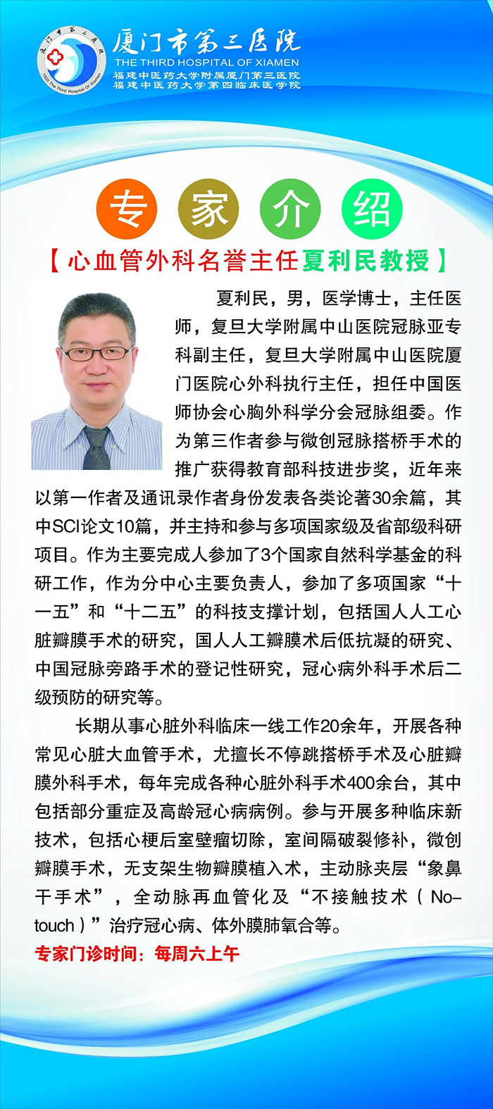 听说,心血管外科专家夏利民教授将到51黑料 门诊一楼坐诊。