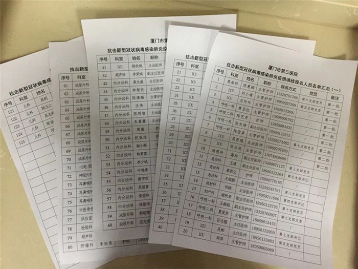 呼吸内科主治医师,擅长呼吸危重症诊治、纤维支气管镜的介入治疗,在三院有丰富的临床经验和防控治疗传染性疾病的经验,在看到院党委发出的倡议书后,他第一时间报名,要求加入到医疗救治队伍中。 其实,武汉对于张先锋而言,也是第二故乡。2004年7月,张先锋毕业于武汉大学临床医学专业,如今武汉疫情形势严峻,他希望这个时候的自己能够为武汉打赢疫情防控阻击战略尽绵薄之力,“家人很是支持我报名,我时刻准备好向武汉出发。” 重症医学科副护士长:张永锐 张永锐目前在ICU工作也有十四年,先后取得全国急危重症护理高级专科证书、呼吸治疗师证书,在危急重症护理领域有丰富的工作经验,特别擅长呼吸治疗技术、肺康复等。他表示,希望能够加入到福建支援武汉医疗队中,不计报酬,全力以赴,随时听候调令,坚决打赢这场硬战。 重症医学科(ICU)护士:庄吟吟 “好几次看到前方报道,默默流泪,一点微薄力量,请战!”重症医学科护士庄吟吟第一时间通过微信,向护士长周萍报名,随后利用休息时间写了请战书。 庄吟吟说,自己从事临床护理已有21年,其中在 ICU就有17年之久,有着丰富的临床护理经验。她说,自己不忍心看着同胞同行在人员紧缺的情况下,日夜不分,冲锋陷阵,希望在这个时候能贡献自己的一份力,“让患者减少痛苦,给同行的医护人员多一点休息时间。” 庄吟吟的心思,家里人看得很是透彻。“她心系武汉,我们支持她的决定,”庄吟吟的家人说,他们也希望庄吟吟能在救治病人的同时,保护好自己和同事。 医学检验科副主任:林燕平 “我报名去武汉,行李也收拾好了。”检验科副主任林燕平,病人多,检查的项目就多,这项工作总需要有人做,爱人和儿子支持她报名支援武汉,她愿发挥专业知识优势,到疫情一线做一名检验“侦察兵”。 呼吸二科护士长:夏爱芳 夏爱芳是湖北人,爱人是一名部队医生,大儿子今年16岁,二宝现在2岁,她认为,自己身为湖北人有义务也有责任在关键时候报名前往武汉抗击肺炎疫情。“妈妈,你去吧,我一定会帮爸爸照顾好弟弟的。”家人对夏爱芳的决定表示支持,大儿子自信而坚定的的话语让夏爱芳更加义无反顾。 感染科: 从疫情爆发,身为专家组成员的感染科主任马龙,就驻守医院,积极参与新型冠状病毒肺炎的诊断救治工作,尽管膝关节疼痛肿胀,但他都没有停下休息的步伐,一直坚守在临床一线,至今已连续一个星期没有回到家中,更别提与家人相聚围炉。 马龙说,我们感染科的医务人员一直心系着疫区人民,对疫区群众的遭遇深感同情,科室全体人员都有一种前去救援的冲动。,全科人员主动请缨,向医院党委提出申请,强烈要求奔赴一线疫区参与病毒阻击战。我们也将竭尽全力、不辱使命,为捍卫人民群众的健康尽力。 妇产科: 生命重于泰山,疫情就是命令,防控就是责任。在做好本职工作的同时,院党委委员、妇产科主任徐彩临率科室全体党员、科主任、护士长及全体男医生郑重向院领导提出申请加入抗“新型冠状病毒的肺炎疫情”战斗中去,我们随时听候调遣。 内分泌科: “一方有难,八方支援。”内分泌科科主任高允盛将倡议书发到工作群后,陈德梅、陈明智、汪伟、周密、吴丽青等科室15名医护人员纷纷报名,“哪里需要我们,我们就到哪里去。” 还有很多医护人员通过微信报名, 言语虽短, 但写出了三院医者的仁心与担当, 其中包含的不仅是始终坚守的职责, 更有逆风前行的无畏。