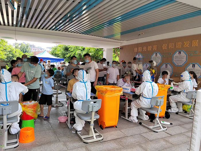 市第三医院党委始终把疫情防控工作作为当前最重要的政治任务来抓,党委书记彭月芗,党委副书记、院长彭小松等党委领导班子,带头深入一线、靠前指挥,集结全院力量,全力配合做好全区全员核酸采样、检测工作;
