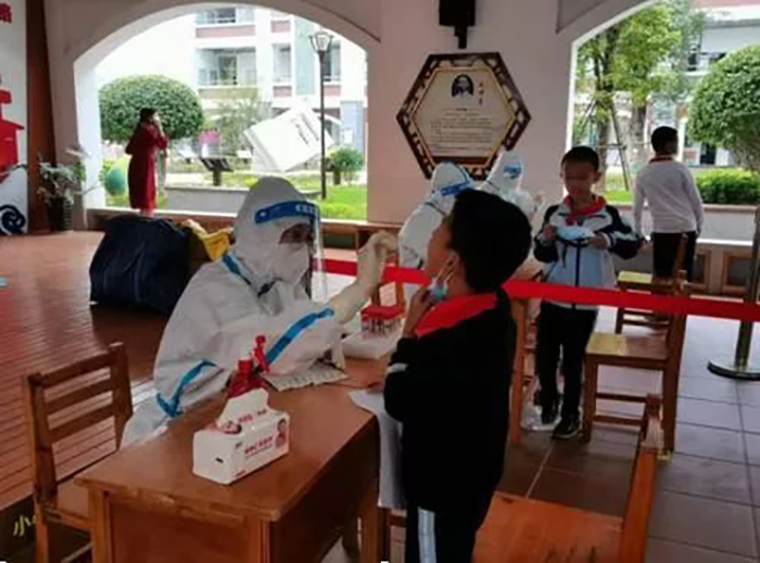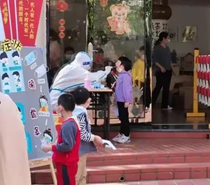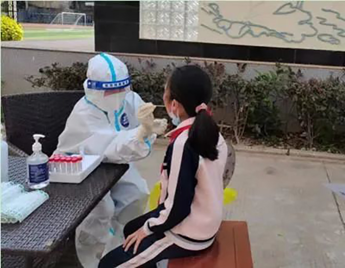 本次核酸检测工作时间紧、任务重,医院精心组织、周密安排,克服人手紧缺的困难,从各科室抽调经验丰富的骨干力量,经过严格培训后上岗,许多医务人员夜班白班“连轴转”,主动牺牲个人休息时间参与采样工作。此次采集对象包括很多低年级和幼儿园的学生,医务人员一遍遍弯腰低头,耐心地引导幼儿保持正确动作、安抚他们的情绪,高效、顺利地完成了采样工作,为持续筑牢健康免疫屏障,增加校园“安全防护墙”贡献了三院力量。