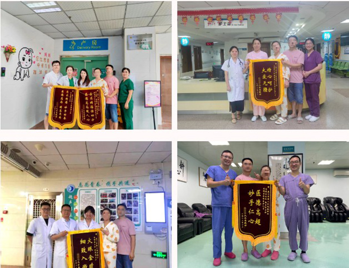 孕34周时,张女士入院。 医务部组织多学科(MDT)讨论,妇产科、泌尿外科、新生儿科、麻醉科、手术室、ICU、介入科、输血科、化验室及超声影像科参加,制定了详尽的手术方案及术中大出血的应急预案。 7月5日,经过充分的术前准备,张女士开始手术,麻醉科行腰硬联合全身麻醉、自体输血,泌尿外科行膀胱镜下双侧输尿管支架置入术,输血科也做好血源备用。 妇产科团队开始子宫第三次剖宫产,术中见粘连严重,胎盘植入膀胱,子宫上有大量怒张血管,血供异常丰富。虽然已经预想到术中会有凶险情况发生,但大家的心还是一下子悬了起来。罗美娣主任医师凭借多年临床经验,沉着冷静,用娴熟的技术分离粘连,选择合适的子宫切口娩出胎儿,手术过程如“刀尖上的舞蹈”。 婴儿娩出,随着婴儿一声啼哭,立即予以缩宫剂,子宫仍出血凶猛,医生们立即予止血带压迫子宫下段止血,罗美娣主任医师带领团队人员,剥离并切除植入胎盘,之后立即结扎双侧子宫动脉下行支,并采用防提式缝合、压迫缝合、宫颈提拉缝合等止血技术,并修复子宫下段解剖结构,予宫腔水囊填塞术。历经3小时手术,张女士母子平安,且成功保住子宫! 出院当天,张女士与家人将5面鲜艳的锦旗送到妇产科、新生儿科、麻醉科和超声影像科。张女士拉着医护人员的手动情地说:“我非常幸运地选择了市第三医院,选择了你们,真心感谢你们,不仅技术强,服务也很暖!” “5面充满感激和爱意的锦旗,既是对我们医术的肯定,也是对我们暖心服务的褒奖,更是鞭策我们前进的动力!”一位医护人员如是说。