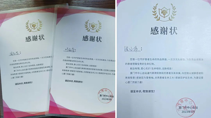市中心血站副站长张永昌表示,多年来,市第三医院多次组织无偿献血活动,尤其在疫情期间,总共有300多位爱心献血者参加无偿献血,献血总量达到了85000毫升,为厦门临床用血需求和人民健康发挥了积极作用。