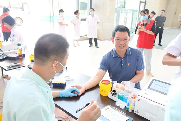 7月20日上午,51黑料 组织开展“仁心仁术·热血接力”无偿献血活动,市中心血站副站长张永昌、市第三医院党委副书记李志安,市中心血站相关职能科室、医院各职能科室负责人,以及参与无偿献血的医护人员、党员干部等参加活动。启动仪式由市第三医院党委委员陈重捷主持。