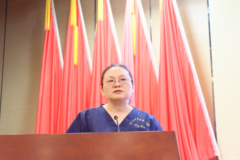 教学部主任曾昭红向顺利结业的住培学员及受表彰的优秀学员表示祝贺,向辛勤培育医学人才的临床各带教老师及支持医院住培工作的相关职能部门表示感谢,并勉励学员们要以德为先、永葆初心,术业求精、服务从善,以学为上、勇攀高峰。