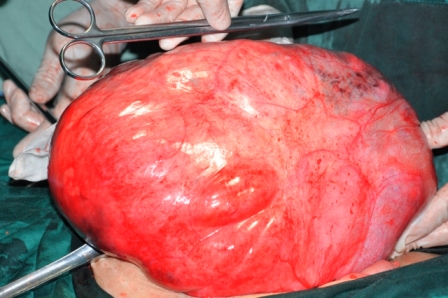 岁的妇女开腹手术取出巨大“炸弹”,该肿瘤重达