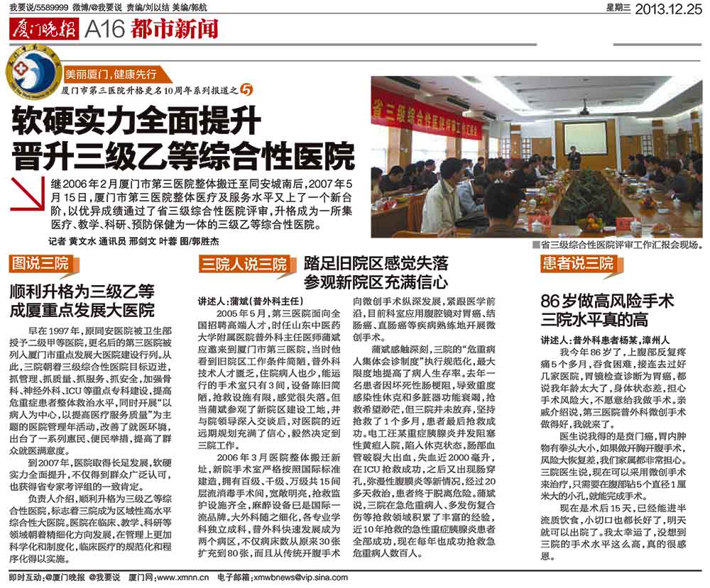 551黑料 升格周年系列报道(软硬实力全面提升 晋升三级乙等综合性医院)