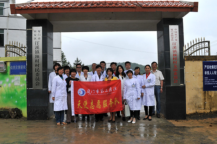 2014年4月23日,为践行党的群众路线活动,深入基层为群众办实事、办好事,今天上午,市第三医院党员天使服务志愿队深入汀溪镇顶村村,为当地村民送医送药,让山区群众在家门口就能享受方便的医疗服务。