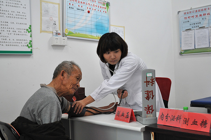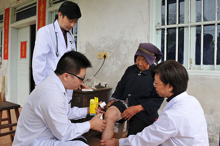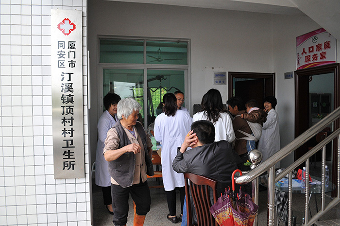 在顶村村村委会,医疗服务人员耐心地为前来问诊的村民量血压、把脉开方,并关心地叮嘱他们要注意如何用药和调理饮食,向他们传授一些医疗保健知识。顶村村是同安区距离城区相对遥远的山顶村,村里多数为留守老人和儿童,医疗卫生条件也相对较差。为了给群众提供更好的医疗服务,市第三医院专门组织内、外、妇、儿、口腔、眼科专家为群众义诊咨询,让村民们在家门口就能享受到周到的医疗服务,村民感激不尽。此外,除了现场义诊,第三医院还为村卫生所赠送急救药箱;医疗服务队还走村串户,深入到该村一些年老体弱的老人家中,为老人们看病开处方,送上贴心的医疗服务和关怀,让当地村民感受到深深的关怀。