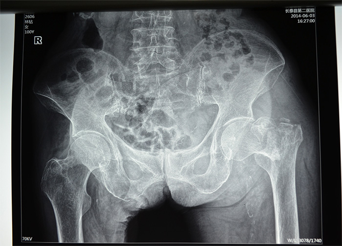 据家属介绍,百岁老人身体还不错,平时生活能自理,还能做家务。5月20日上午,她在洗衣服的时候,由于地面湿滑,摔倒在地,当时左腿就无法站立,送到当地医院拍片,发现左腿髋部骨折严重,且错位明显。考虑患者高龄,骨折严重,手术风险高,技术难度大,当地医院无法完成手术,转入厦门第三医院治疗。