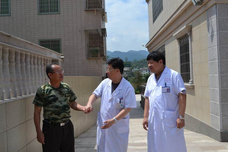 7月12日,烈日当空,第三医院院长助理、神经外科主任、主任医师郭之通,神经外科副主任、主任医师张弋到汀溪镇五峰村走村入户进行出院病人回访,了解病人身体恢复状况,并针对性地进行健康指导。据了解,老许1年前在第三医院成功接受了经单鼻孔神经内窥镜下微创垂体腺瘤切除术,目前恢复良好,能够照常生活、照常工作。老许对第三医院神经外科医务人员德艺双馨的服务十分感激,他对记者说:“我在三院住院41天,那天要出院,我还真舍不得”, “医生就像是我的朋友,我的兄弟”,连连夸赞。
