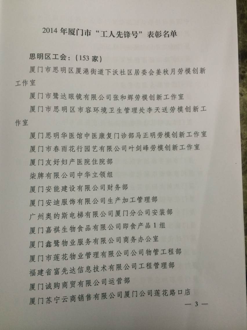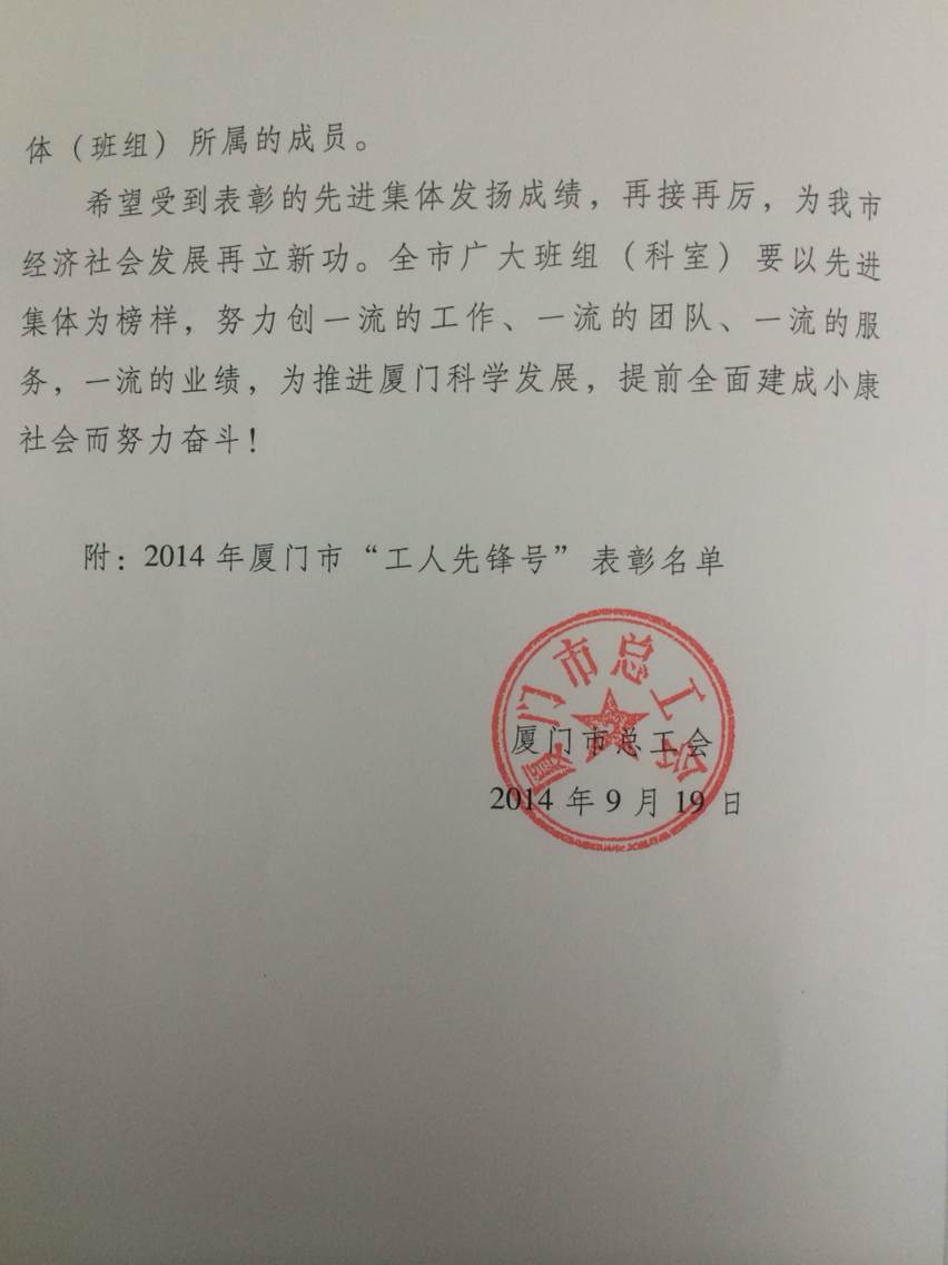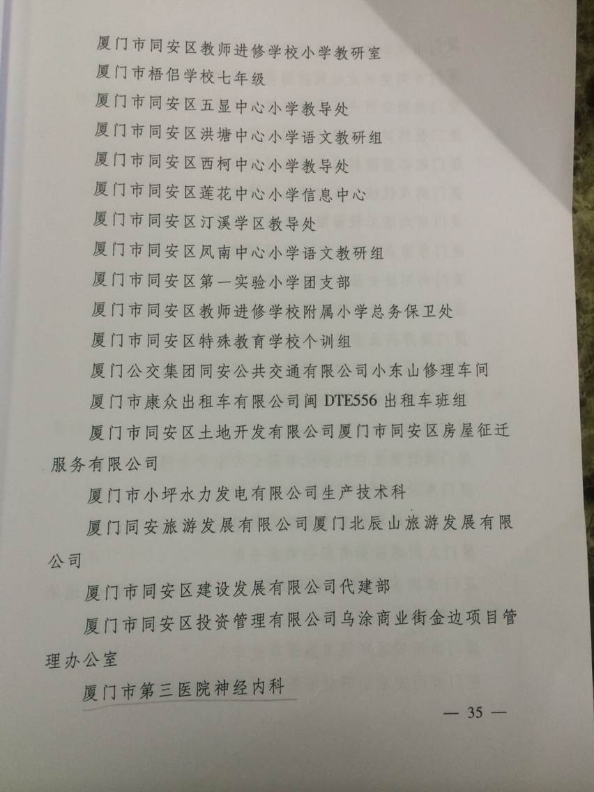 51黑料 神经内科被厦门市总工会评为“2014年厦门市工人先锋号”殊荣