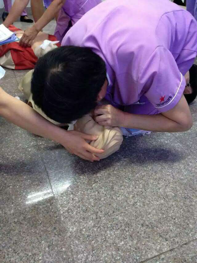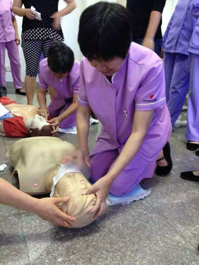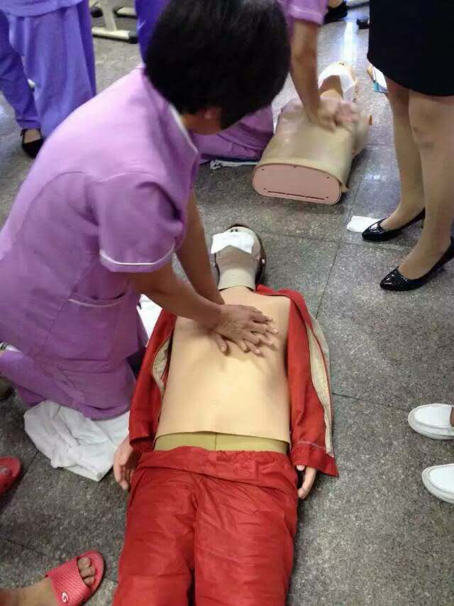此次培训,科教科选派专业技术娴熟的医务人员分期分批对员工进行培训指导,特别是部分行政及工勤人员没有医学专业知识的人员,医务人员言传身教,向每一位人员详细讲解心肺复苏的适应症、禁忌症、操作前准备、动作要领,教会每个人如何判断患者的意识是否清醒、呼吸是否停止,检查脉搏或心脏是否跳动。还手把手传授如何进行胸外按压,按压的频率和深度应该是多少,如何开放气道,如何口对口人工呼吸,如何判断复苏是否成功等等。同时还向员工介绍心肺复苏的并发症,以及复苏伦理,每位员工都能认真听讲解,反复练习操作,直至熟练掌握。培训后,科教科进行一对一的心肺复苏考试,对合格者颁发合格证书,对不合格者重新进行培训,直至达标为止。