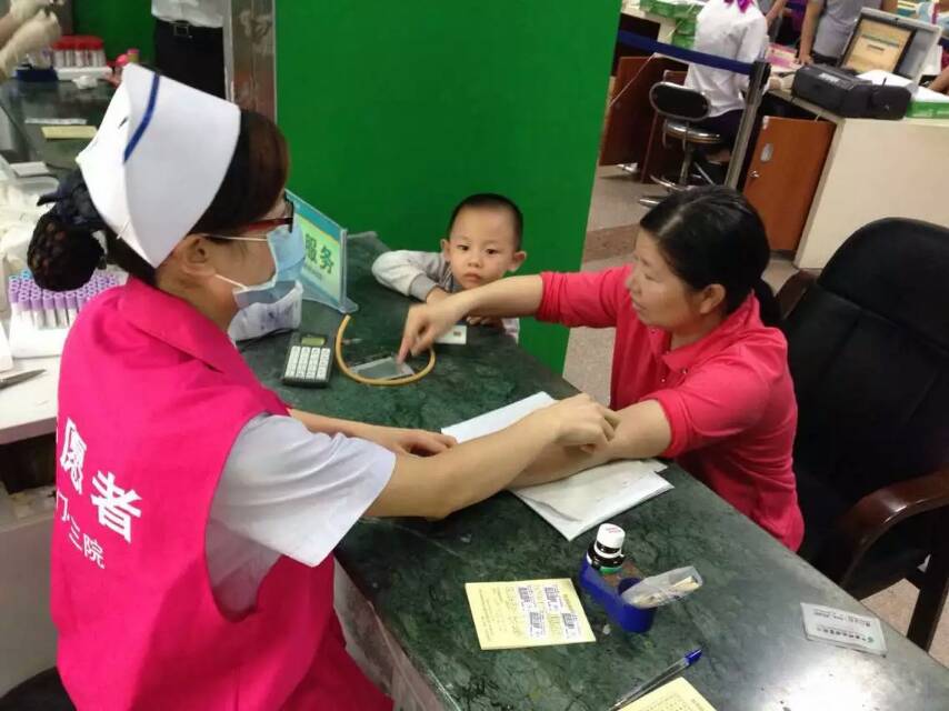 一是增设志愿者采血窗口,有效减少排长队。针对病人多护士少的情况,在院内征集志愿者,成立全市首支抽血志愿者小组,组织志愿者利用休息时间协助检验科进行静脉采血,志愿者的加入极大地提高了采血速度,明显缓解了检验采血窗口的拥堵现象,缩短了患者抽血排队等待时间,缓解了病人焦急的心情,提升了采血窗口服务效率。