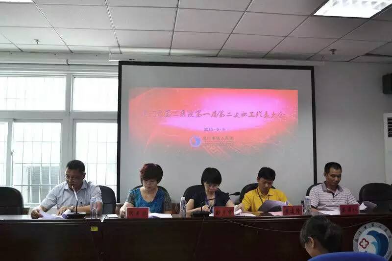 第一届第二次职工代表大会在医院三楼会议室召开,会议由党委书记、工会主席彭月芗同志主持,参加会议的职工代表共79名。