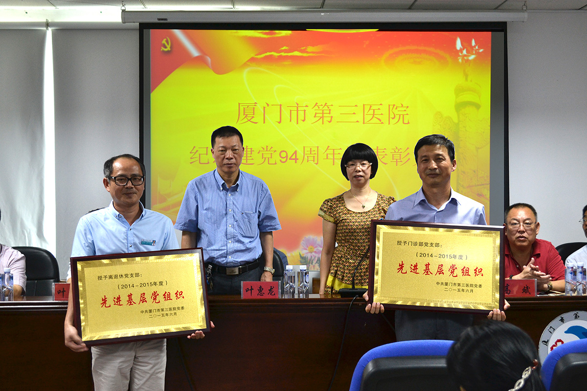 五是表彰先进,树立典型。7月1日下午,医院党委召开纪念建党94周年暨表彰大会,表彰离退休党支部、门诊党支部为先进基层党组织;授予洪红萍等14名同志优秀党务工作者称号,授予王佩华等29名同志优秀共产党员称号,调动和激发基层党组织和共产党员发挥先锋模范作用,进一步更新观念,开拓进取,为医院发展做出更大的贡献。