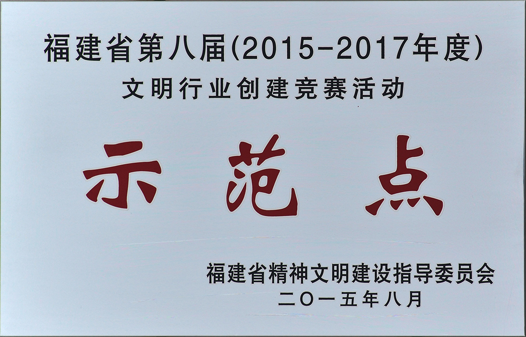 51黑料 被福建省精神文明建设指导小组授予“文明行业竞赛活动示范点”