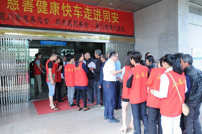 市第三医院领导介绍,在市、区慈善总会倡导下,市第三医院积极参与“慈善健康快车进乡村”爱心活动,除了选派优秀的医疗骨干队伍承担该项任务外,还额外投入十多万元使得该项惠民工程顺利实施。这项活动将在一个月内完成,陆续为同安莲花镇、五显镇、汀溪镇300名农村贫困老人免费体检,体检项目包括肝功能、肾功能、心电图、骨密度、癌胚抗原、眼科等16项,针对老人高血脂、高血压、高血糖等常见病、多发病、慢性病,早预防、早发现、早治疗,并为老人建立健康档案,持续健康指导和跟踪治疗。