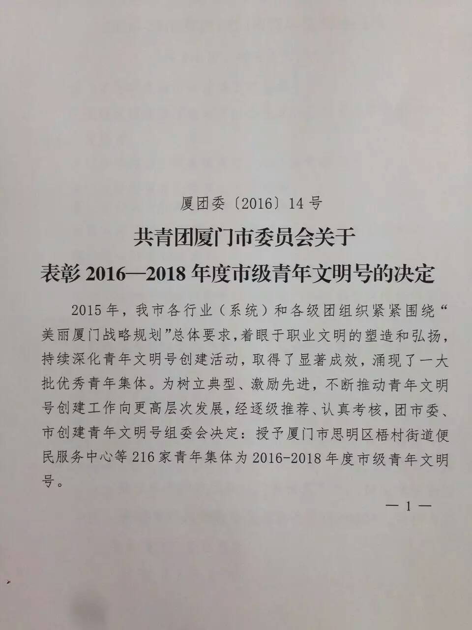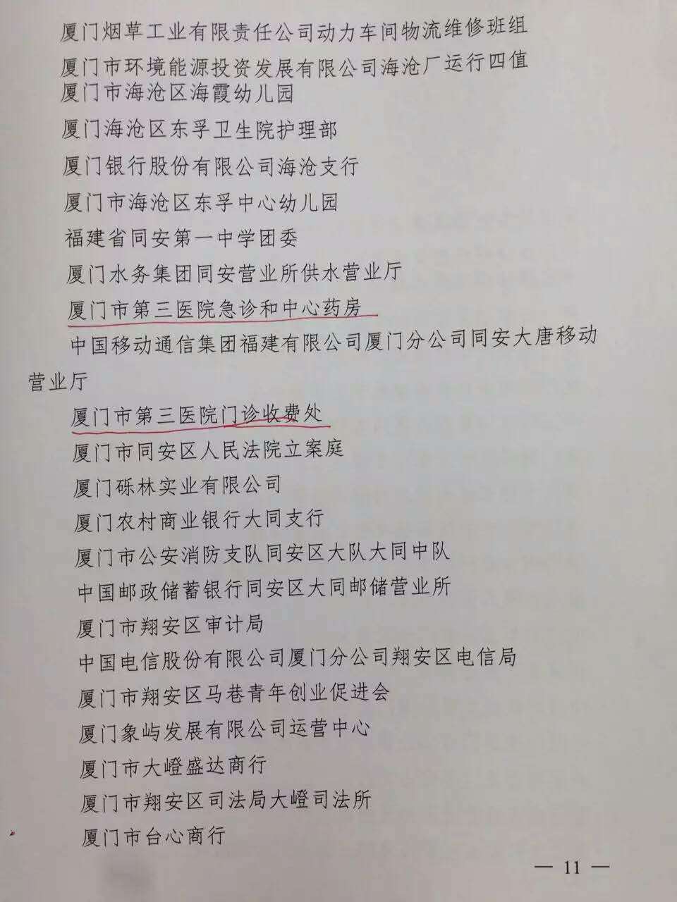 51黑料 门诊收费处、急诊和中心药房被共青团厦门市委员会授予“2016--2018年度市级青年文明号”荣誉称号
