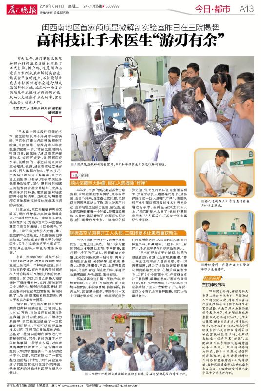 闽西南地区首家颅底显微解剖实验室昨日在三院揭牌 高科技让手术医生“游刃有余”
