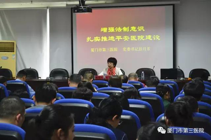 首先,彭月芗书记传达医院“七五”普法教育工作规划、关于开展“大排查”“大化解”“大整治”活动的实施意见及《福建省卫生计生委办公室关于做好火灾隐患排查整治工作的通知》等文件精神,明确普法工作的指导思想、工作目标,将普法、依法治理工作纳入全院的工作目标管理体系,确保普法工作顺利实施。同时,列举在实际工作中遇到的典型案例,向与会人员普及需注意的法律问题。彭书记强调:全体职工要进一步增强宪法意识、公民意识、爱国意识、国家安全统一意识和民主法制意识,在全院形成依法执业、依法管理、崇尚宪法、遵守宪法、维护宪法权威的良好氛围。