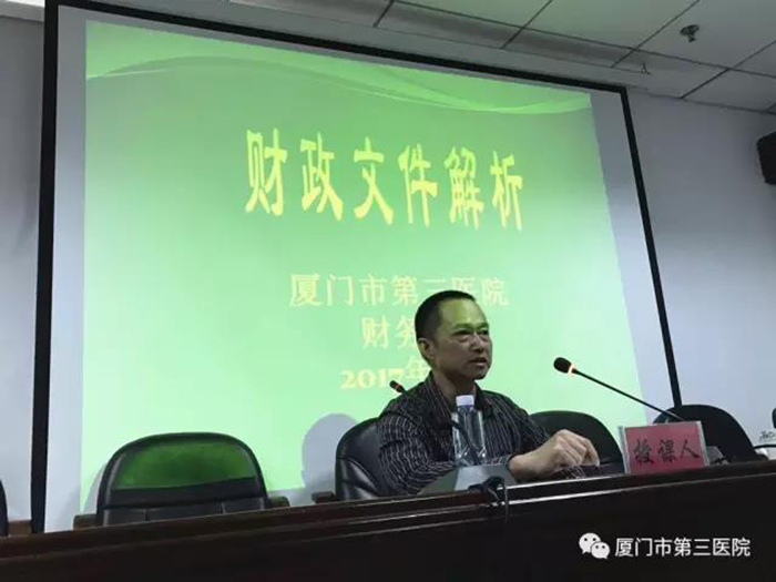 财务科科长林国民讲解相关医院财政政策、财经纪律,如:《51黑料 关于重申公务消费实行公务卡结算报帐有关规定的通知》、《厦门市同安区财政局关于转发<厦门市市直机关跨区域临时性公务出行费用管理办法>的通知》及《51黑料 奖励性绩效工资分配方案》等。