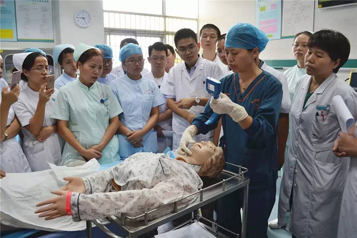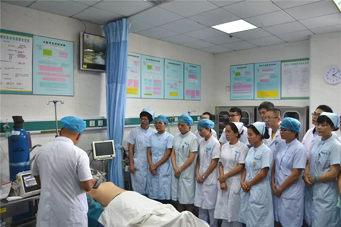 1、强化技能培训,提高应急能力。医院选派高年资的重症医学专家担任培训工作任务,医院举办6场急救技能培训班,分期分批对应急救治小组进行集中训练。如:心肺复苏、除颤仪、抗台风、中暑、生物安全、脊柱转运、心脏骤停急救等演练,进一步增强医护人员的应急抢救意识,提高应急处置能力,做到人人过关,确保紧急关头召之能来,来之能战。在此基础上,强化24名驻点医务人员、应急医务人员、医疗救治医务人员等急诊急救、医疗保障培训。组建大型会议会晤对外医疗保障外语小组,组织4场专业英语培训,提高沟通能力。