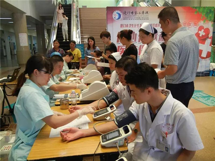 5、仁心仁术献热血,医疗保障我先行。8月16日,医院在门诊大厅举办“凤凰花盛开”七大活动之一“仁心仁术献热血,医疗保障我先行”无偿献血活动,现场有两百余名爱心人士用自己的热血点滴善举,汇聚成救人危难的人间大爱,一天献血量高达五万毫升。参与活动的爱心人士大部分都是身着工作服的医护人员,为了不耽误工作,一大早便赶来现场登记排队,献血后又投入到繁忙的医疗救治工作中去,用实际行动诠释着三院人的爱心、责任与担当,表达了回馈社会的真挚情感和无私奉献的精神。