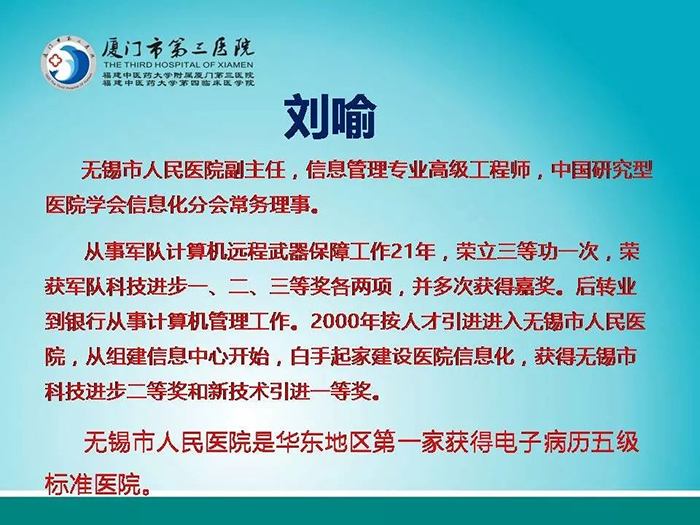 河南大学淮河医院信息中心吴恒主任分享了数字化医院评审与医院信息化建设经验,河南省把信息化建设作为等级医院评审的入门条件,这种作法值得借鉴。信息对医院的建设至关重要,尤其医联体的建设,要成立几大中心,包括区域心电中心、影像中心、物流中心、供应中心等,只有信息化的互联互通,才能确保政令畅通,起到事半功倍的效果。