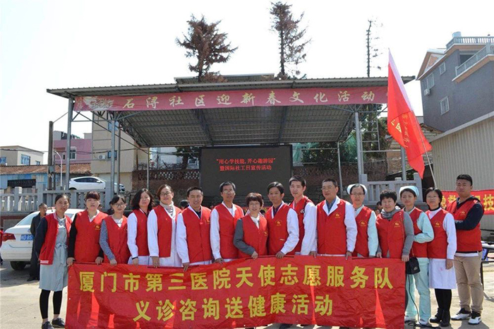 组织医疗志愿队到同安佛心寺为信众及附近村民提供义诊服务。本次义诊内容包括免费进行血压测量、把脉听诊、疾病早筛、健康咨询、常见疾病现场给药治疗等内容。义诊过程中,医生们为每一位信众及村民认真地检查、尽心尽力地答疑解忧,并耐心细致地为大众提供了日常健康指导及疾病的科学处理方式,信众、村民等均对此赞不绝口。