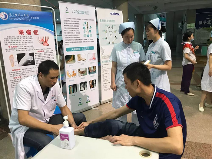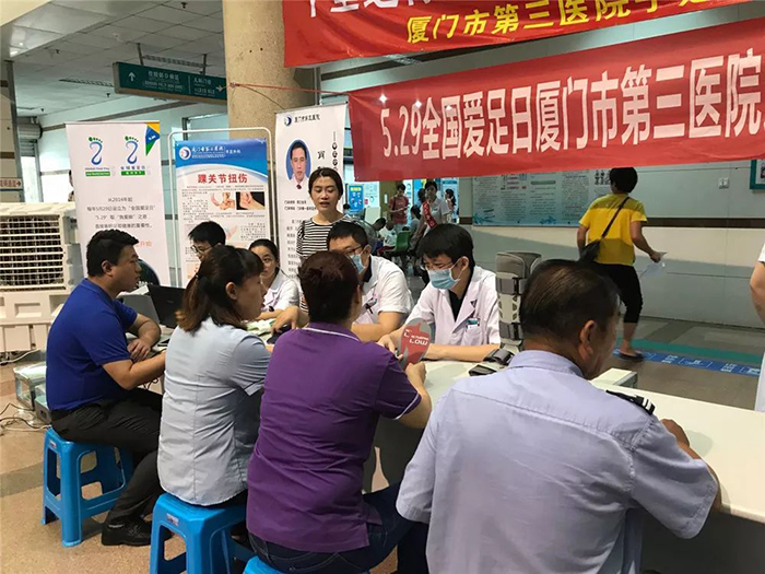 5月29日上午,外科党支部组织党员、医务人员在医院门诊大厅开展“全球爱足日”义诊咨询活动,为群众健康义诊,筛查足部疾病的同时,普及拇外翻、扁平足、踝关节扭伤、跟痛症、踝管综合症等足病知识。用专业的角度、专业的知识,帮助群众了解足踝疾病知识和保健方法,引导民众对足部的重视与避免认识误区。下午,还冒着炎炎烈日深入洪塘镇埔后村开展义诊咨询活动。义诊活动的现场人头攒动,专家们通过检查、了解病史对症开出处方,并耐心地指导群众服药方法及注意事项。医务人员免费为群众进行血压、血糖的测量,并宣传健康知识,传授保健技能,倡导健康生活等。对于一些行动不便的患者,还主动上门热情服务。由于大部分前来义诊的村民为中老年人,听力有些障碍,每个医务人员都耐心细致、不厌其烦的逐一解答他们提出的各种问题。