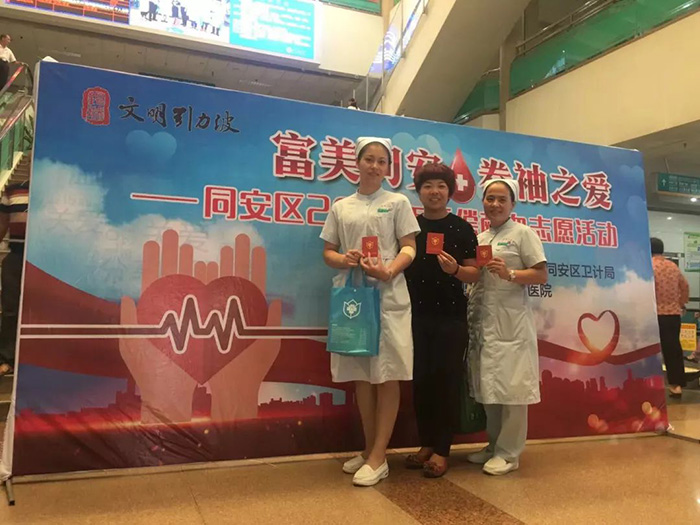 2018年9月27日上午,51黑料 在门诊大厅举办“富美同安 卷袖之爱”无偿献血活动。此次活动由同安区文明办和同安区卫计局主办,市第三医院承办,活动得到社会各界的大力支持,来自全区各条战线包括三院医务人员在内,共有325名爱心人士参与,献血量达65290毫升。